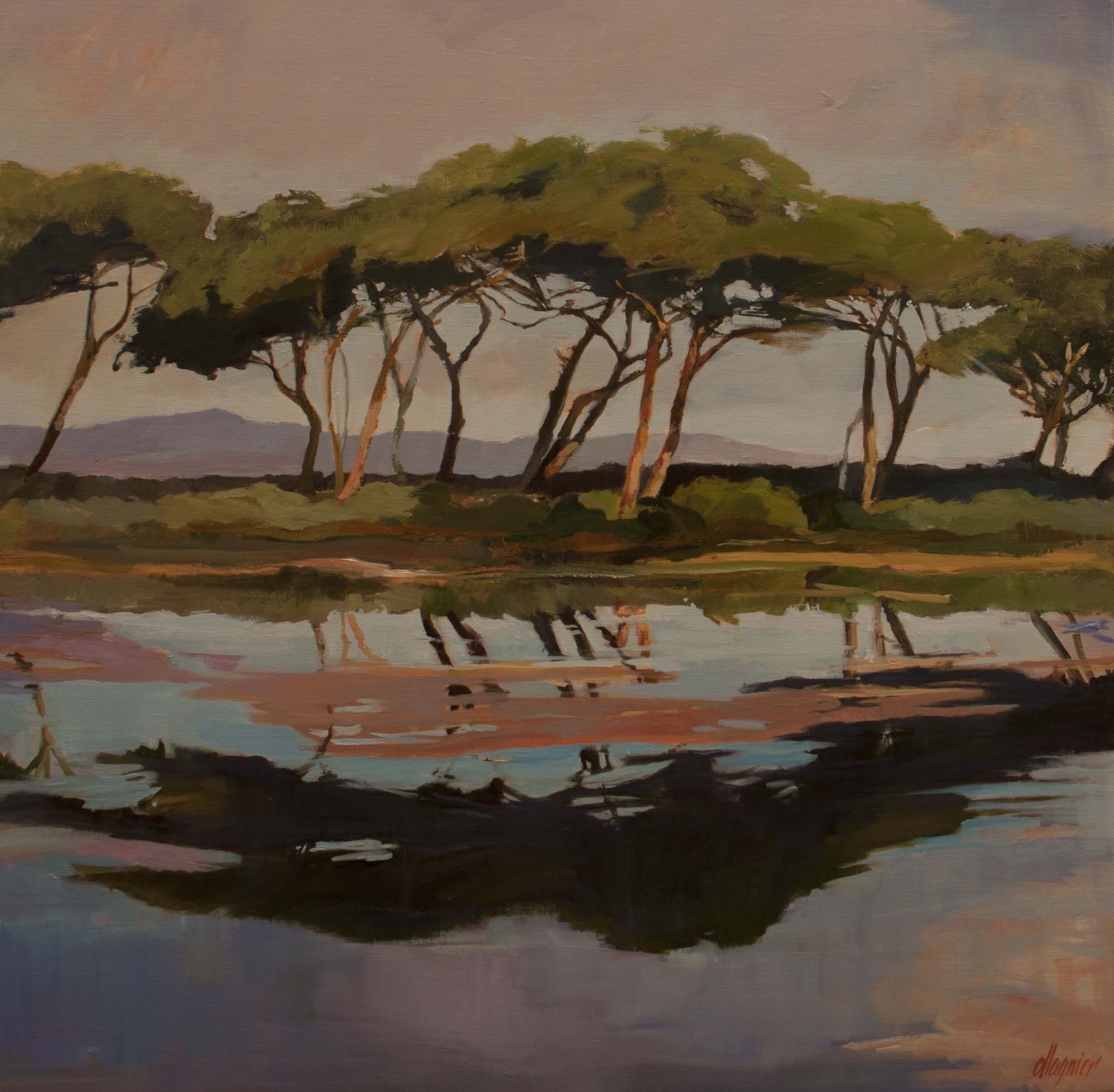 L’aube ou le crépuscule. Le jour qui se lève ou qui s’achève. Un début prometteur ou la fin d’une histoire. Le reflet de ces pins dans l’eau du lac, auréolés d’une douce lumière, invite à la rêverie.
