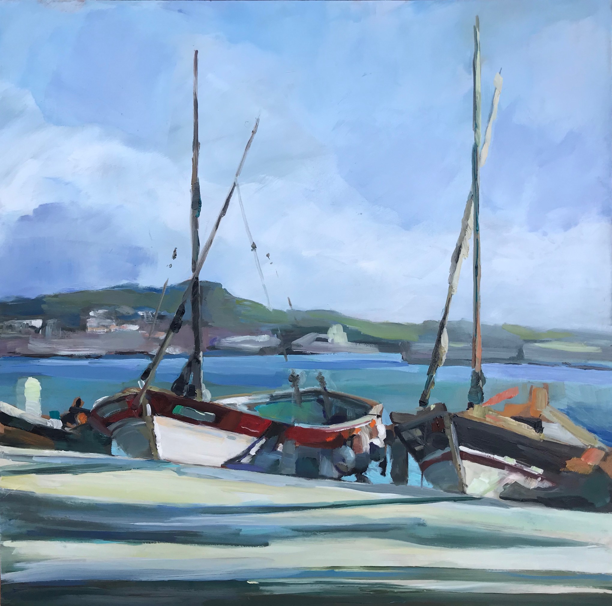 La silhouette colorée de ces pointus provençaux suffit à nous donner l’impression de respirer la délicieuse odeur de la Méditerranée. Ils semblent attendre sagement le prochain départ au large.