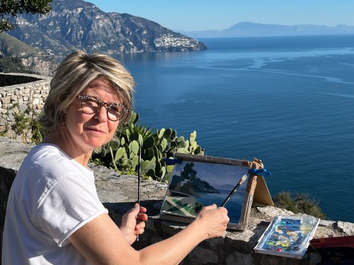 Passionnée par l’Italie, Nathalie s’inspire des ambiances chaleureuses et lumineuses des villes et villas italiennes, retranscrivant leurs couleurs et atmosphères uniques dans ses œuvres.